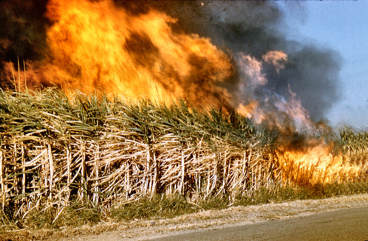 In agriculture area, the fields are all burned, after a sugar cane field or corn field is harvested. This is done to kill off any rodents, insects or eggs in the fields. Burning the field would also help fertilized the field for future fields.
